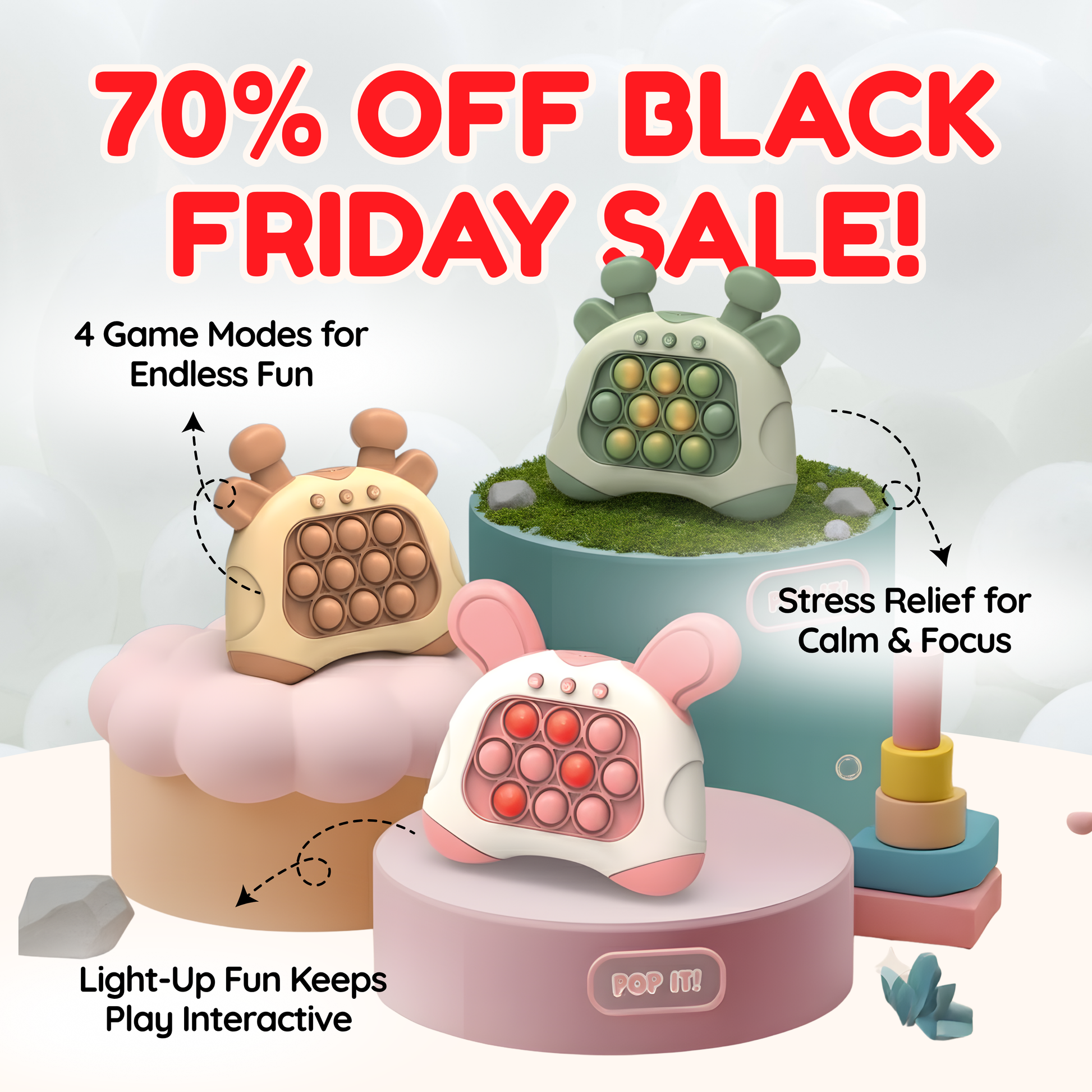 Whether for kids or adults, FidgetPop™ delivers fun and relaxation anytime.